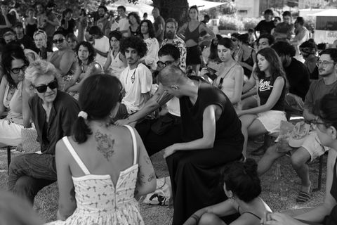 Il progetto curatoriale DINTORNI. Teorie e pratiche per corpi sonori parte da questi interrogativi per indagare la voce e l’alterità nelle sue più ampie sfumature. La voce, essa stessa linguaggio, produce spazi acustici esperiti come spazi liminali, come spazi di continui mutamenti, passaggi e metamorfosi. Il corpo diviene così cassa di risonanza che vibra nell’emissione e nell’ascolto della voce, diviene la medesima abitazione dell’essere, il suo eco crea e inventa mondi, atmosfere, spazi e sensazioni.